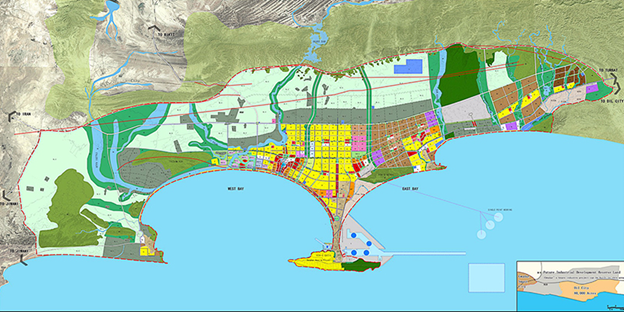 The master plan of Gwadar port city has been mapped from 2017 to 2050 clarifying the city distribution.