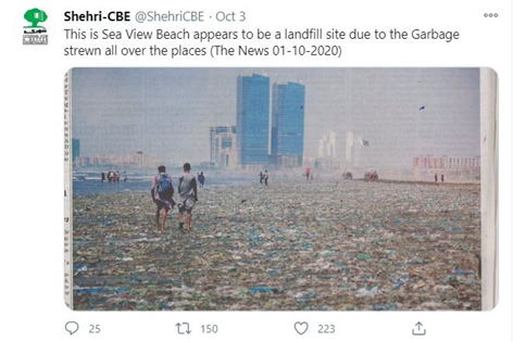 Wasim Akram’s wife Shaniera Akram shared a tweet on 5th Oct, 2020 regarding the dirty condition of Karachi to which Shehri-CBE retweeted also.
