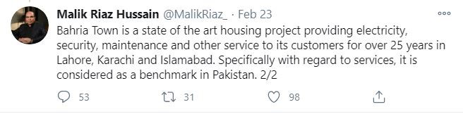 The biggest business tycoon of Pakistan and owner of Bahria Town Malik Riaz on 23rd February, 2020 tweeted about the facilities of BTK, he committed to deliver successfully.