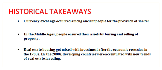 In actuality, this is not true. Many historians claim that there are remains of currency exchange among ancient people for the provision of shelter. Our ancestors may have conceived this industry, but buying and selling property are solely based on the ambition of a common man.