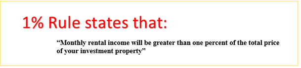 This means that if you bought a property worth $150,000, then your monthly rental income will be $150,000, multiplied by 1% equals to $1500.